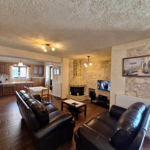 Στο ισόγειο υπάρχει κουζίνα, σαλόνι και ένα μπάνιο. Επίσης στο ημιυπογειο υπάρχει ένας επιπλέον ανεξάρτητος χώρος φιλοξενίας με 2 μονά κρεβάτια.